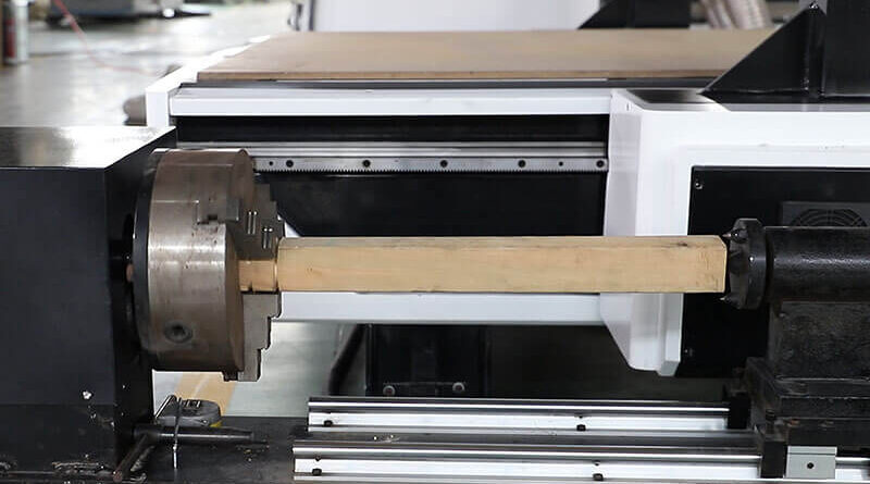4 axis CNC router generally can be divided into a 4th axis CNC router and rotary axis CNC router. Comparing the 4 Axis CNC router to the 3 axis CNC router, the 4th axis engraving machine is special in its spindle which can swing 180 degrees in both positions – left and right. The 4-Achsen-CNC-Fräse can realize plane processing and also make work possible on both sides. It does some surface processing of 3D workpieces. Another 4 axis CNC router is also called a rotary axis CNC router. Compared with the 3 axis CNC router, this type of CNC machine includes adding a rotary device to the 3 axis CNC router. The rotary device majorly realizes the machining of cylindrical workpieces. It should be noted that the rotary device can be placed in any position you want to either in the X-axis direction or the Y-axis direction of the machine. Similarly, the rotary device can not only be placed on the machine but also function independently of the machine. It is easier to operate, transport, and maintain. Therefore this type 4 axis CNC router can realize processing cylindrical workpieces and the plain engraving.